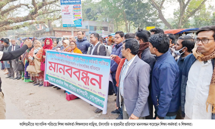 গোপালগঞ্জের কাশিয়ানীতে চাঁদা না পেয়ে শিক্ষা কর্মকর্তা-শিক্ষকদের লাঞ্ছিত ও হয়রানীর প্রতিবাদে মানববন্ধন কর্মসূচী পালন করেছেন প্রাথমিক বিদ্যালয়ের শিক্ষক-শিক্ষা কর্মকর্তারা।
