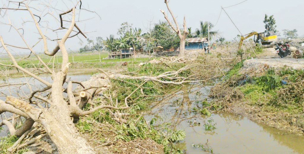 দ্বায়ীত্বে থাকা উপসহকারী প্রকৌশলী আমিনুল ইসলাম সোহাগ জানান, আমরা ঠিকাদারকে খাল খননের কাজ দিয়েছি, গাছ কাটার কোনো নির্দেশনা দেওয়া হয়নি।