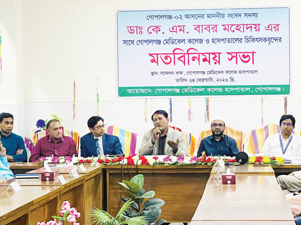 গোপালগঞ্জ মেডিকেল কলেজ হাসপাতাল ও ২৫০ শয্যা বিশিষ্ট জেনারেল হাসপাতালের চিকিৎসা সেবার মানোন্নয়ন এবং স্বাস্থ্যসেবা সাধারণ মানুষের দোরগোড়ায় পৌঁছে দেওয়ার লক্ষ্যে চিকিৎসকদের সাথে মতবিনিময় করেছেন গোপালগঞ্জ-২ আসনের নবনির্বাচিত সংসদ সদস্য ডা. কে এম বাবর।